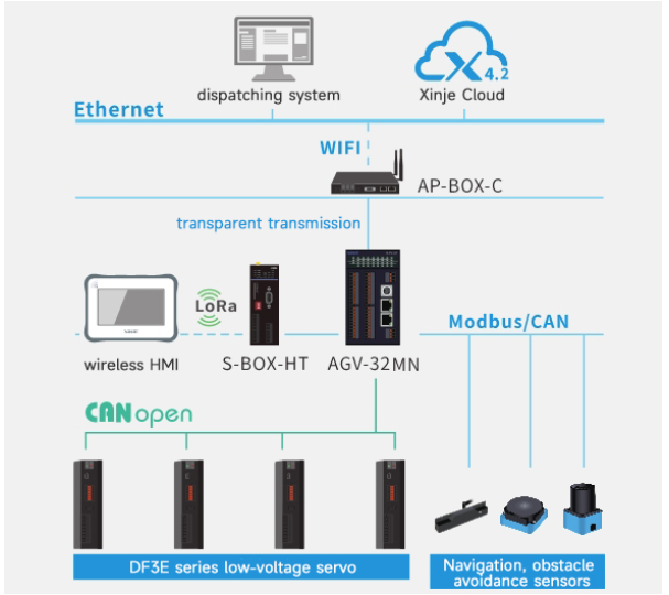 The control system collects signals such as magnetic navigation sensor, RFID sensor, laser obstacle avoidance, and safety edge touch, and walks according to the set task path trajectory. Through the data of the magnetic guide sensor, the differential control of the driving wheels is carried out to realize the control of correction and steering to ensure that the AGV can walk stably along the magnetic stripe.
