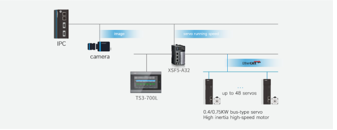 Select 0.4KW bus type servo and high inertia high-speed motor, rated speed of 3000rpm, supporting 3 times overload.