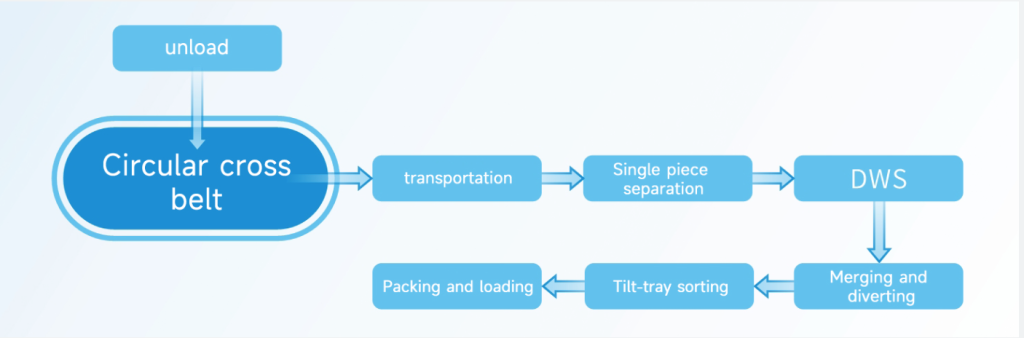 The matrix sorting system is a commonly used sorting method in distribution centers for major courier companies, often applied at the collection and unloading points of distribution centers. This system is highly flexible and can be arranged and adjusted according to different site environments, with the ability to add or remove slots. Moreover, it offers excellent compatibility with items like woven bags, cartons, and larger or heavier parcels.